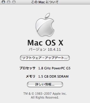 iMac G5 に取り付けられているメモリの合計(1.5GB DDR SDRAM)が表示されています。