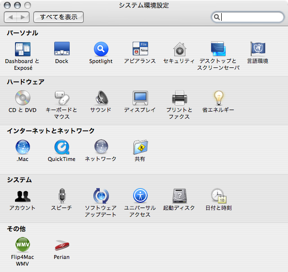 「システム環境設定」→「サウンド」をクリックし「サウンド」の設定画面を表示します。