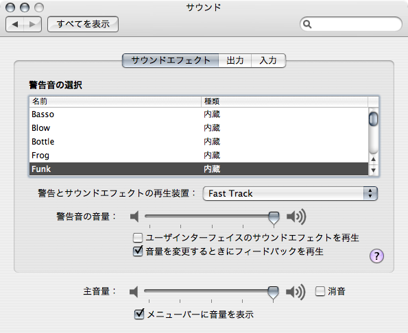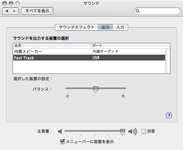 iMacのオーディオ入出力がFASTTRACKでできるように設定します。